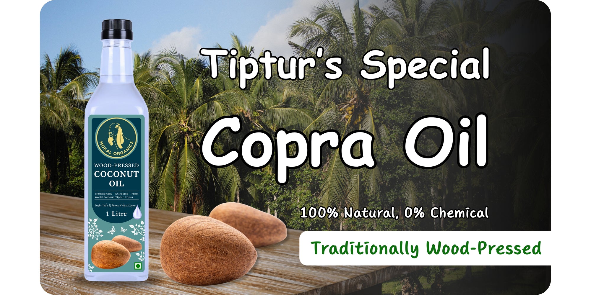 Wood Pressed Coconut Oil 1 Litre | Extracted From World Famous Tiptur Copra