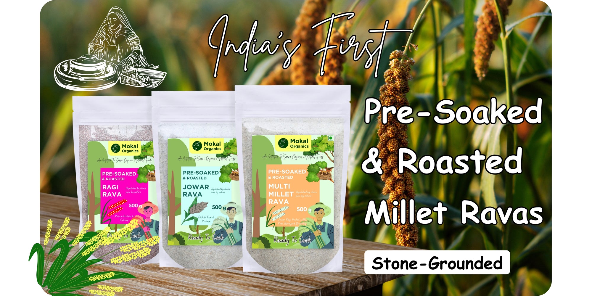 Pre-Soaked Multi Millet Rava 1Kg | Jowar, Ragi, Foxtail, Little, Kodo, Barnyard, Browntop | Traditionally Stone-Grounded - ( 500g x 2 )