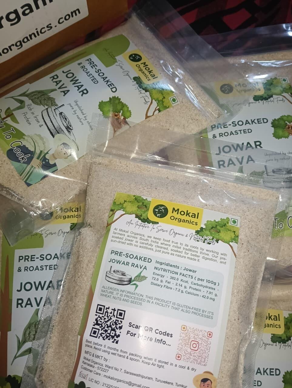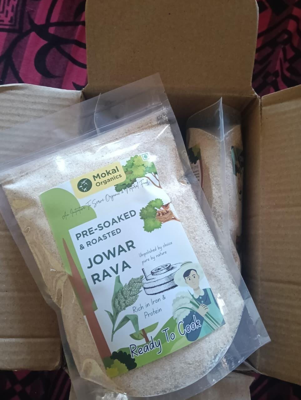 Pre-soaked jowar rava (sorghum rava) made from native South Indian jowar, carefully selected for purity, flavour and nutritional value. The jowar grains are soaked for 12 hours to naturally reduce anti-nutrients and improve digestion, then sun-dried for 3 days to enhance aroma and retain their natural goodness. They are lightly roasted and traditionally stone-ground to preserve natural fibre, essential minerals and authentic texture. Soft, aromatic and easy to digest, this healthy jowar rava is ideal for making upma, idli, dosa, pongal and porridge, offering clean, traditional and nutritious nutrition for everyday meals.